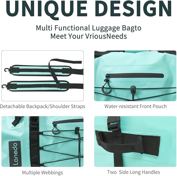 - MULTIPLE APPLICATION-- LANEDO marine dry bag 80L is suitable for water sports like kayaking and paddle boarding, it is not only as waterproof duffle bags for boating, but also fishing, diving, motorcycle trips, hiking, and other outdoor activities
