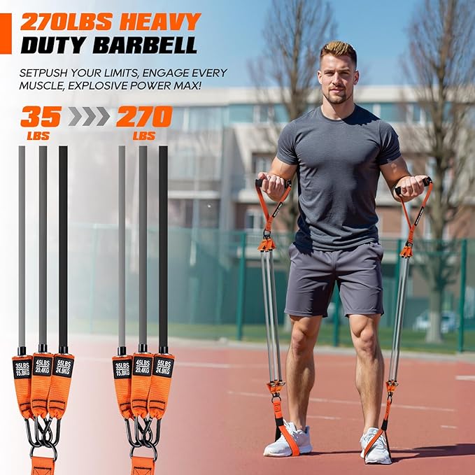 - 【270LBS Heavy Resistance】Our Pilates training set features 6 exercise bands – 2x35lb, 2x45lb, and 2x55lb tubes, offering up to 270lb resistance. Made of natural latex, it has high elasticity and tear resistance, suitable for intense daily exercise. Whether you're a beginner or advanced user, it adapts to your strength level.