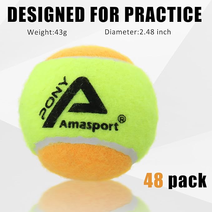 - Stage 2 – Orange Balls (50% Slower): Medium bounce and speed. Great for kids aged 8-10 practicing on 60-foot courts and building rally skills.