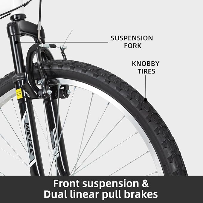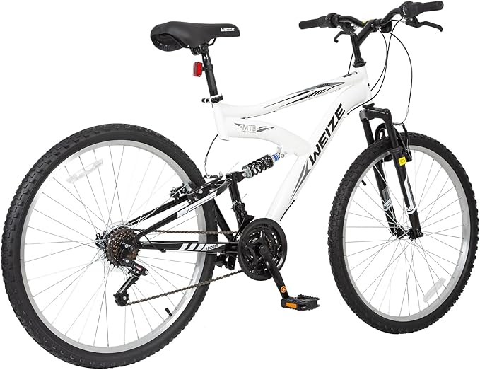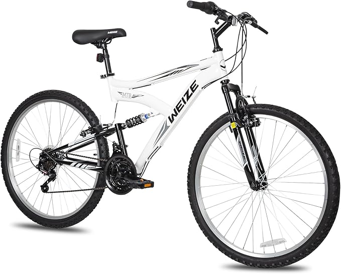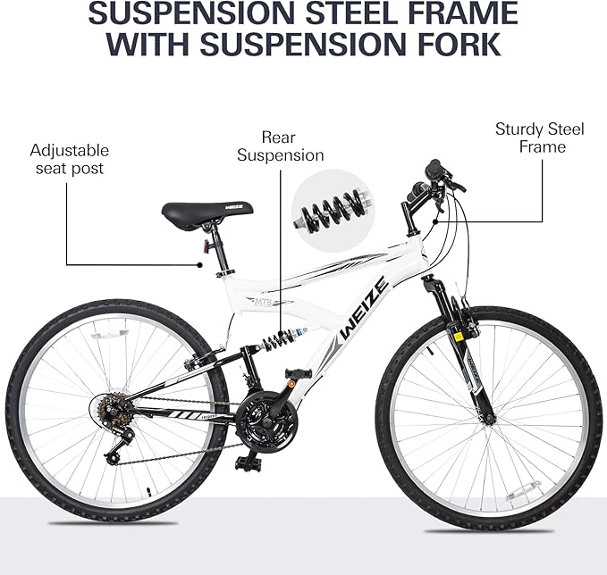 WEIZE Mountain Bike, 26/27.5 inch Outdoor Cycling Bike,18-Speed/High-Carbon Steel/Dual Full Suspension, Adjustable Ergonomic Seat for Men Women Adult, MTB Bicycle with Suspension Fork,Sleek Colors