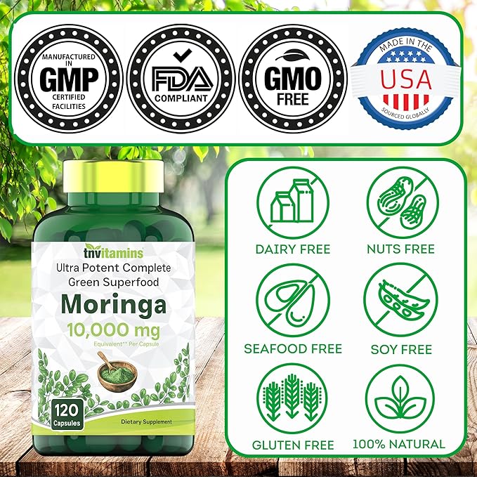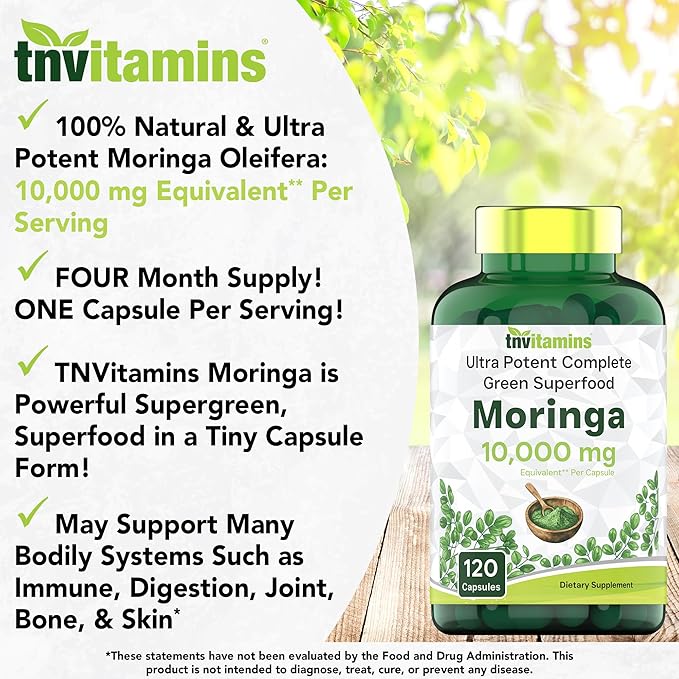 - ✔️ TNVitamins Ultra Potent Moringa Capsules: 10,000mg Per Capsule!