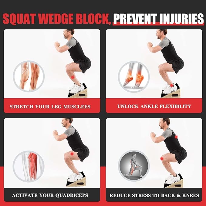 - Improves Knee Health: This squat board is designed primarily for knee and leg exercises, making it perfect for knee-over-toe exercises, squats, split squats, and more. By incorporating this board into your routine, you can significantly improve knee health and build lower body strength.