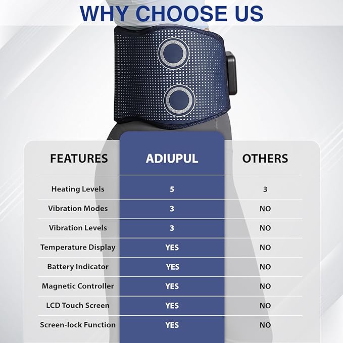 - 【Touch Screen Control】- This back massager belt for back pain relief is extremely user-friendly. It features an LED touch screen controller that allows you to easily select the heating or vibration function with just a single touch. The massager is equipped with an auto-off feature that activates after 20 minutes of use. You have the flexibility to use the massage and heating functions independently or together for a customized experience.