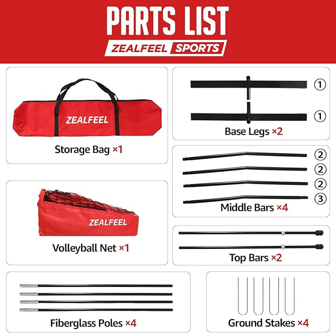 - Upgraded 16MM Fiberglass Poles with Poletech Technology: Our volleyball net is equipped with upgraded, patented Poletech fiberglass poles, designed by professional athletes to ensure durability for over 200,000 uses. The volleyball net with poles effectively absorbs and disperses impact, ensuring that the equipment won’t warp or break during intense training, thereby enhancing safety and extending its lifespan