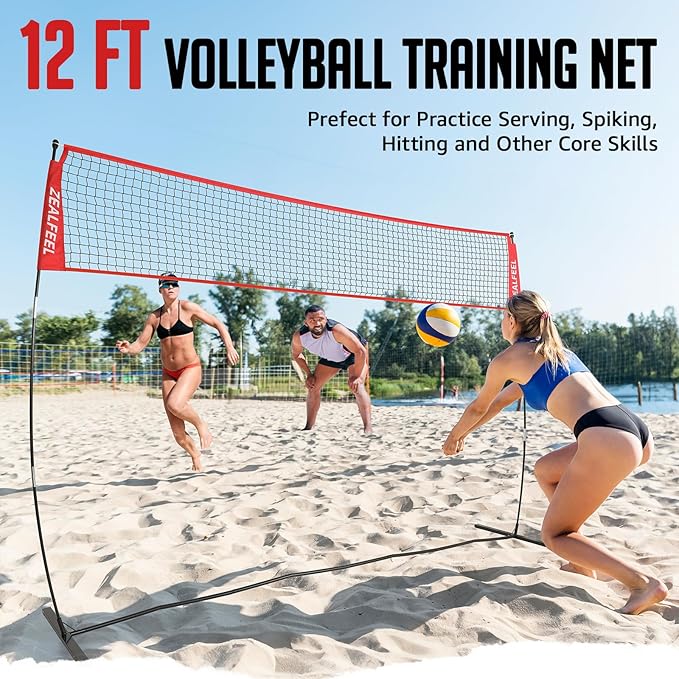 - 12FT Volleyball Training Net: This 12ft wide practice net is a great alternative to regular 32ft nets, ideal for backyard or indoor use. Perfect for one-on-one or two-on-two scrimmage games, it accommodates players of all ages and skill levels. The volleyball net system includes a 12ft volleyball net, 1 backpack, and 4 ground stakes