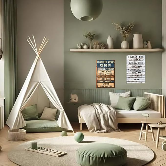 Motivational Metal Tin Sign - 8 Powerful Words for The Day Posters - Inspirational Wall Art Positive Quotes for Home Gym Office Classroom Decor Durable Rustic Wall Decor for Teens Adults 8x12 Inch