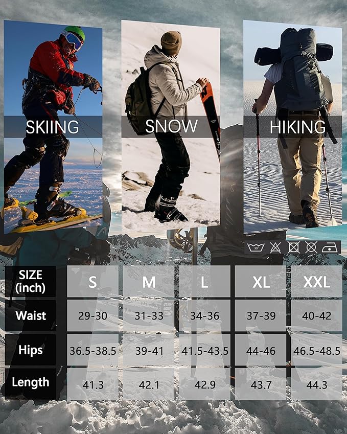 • Snow Pants Men: Enjoy the ultimate comfort and warmth with the Men's fleece-lined outdoor cargo hiking pants. The moisture-wicking fleece lining keeps you snug during chilly winter hikes, ski trips, or snow adventures
