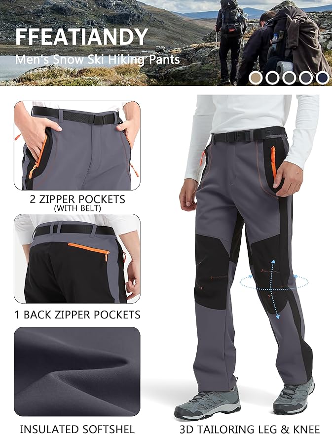 - Snow Pants Men: Enjoy the ultimate comfort and warmth with the Men's fleece-lined outdoor cargo hiking pants. The moisture-wicking fleece lining keeps you snug during chilly winter hikes, ski trips, or snow adventures