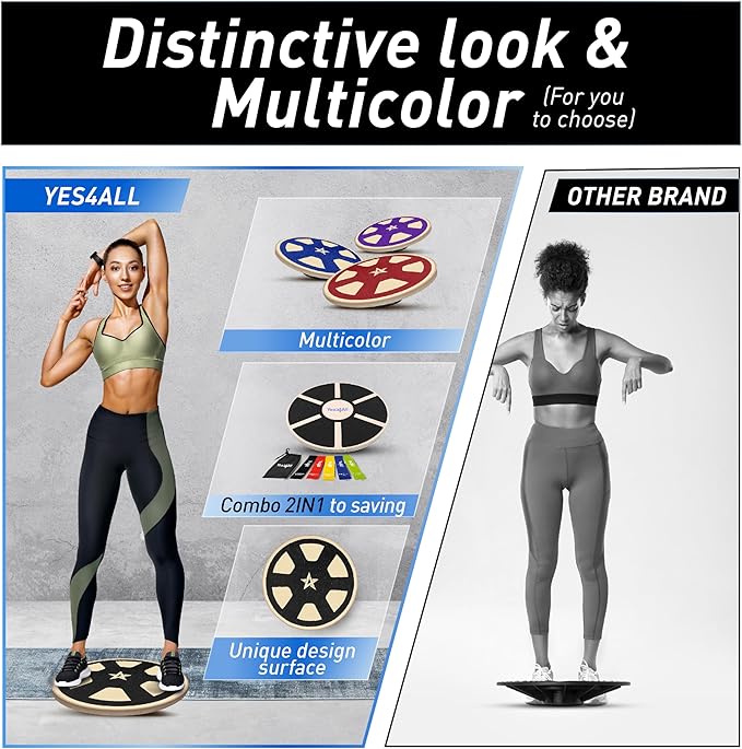 - UPGRADED BALANCE CHALLENGE: 15-degree tilt angle and 360-degree rotation of this small balance board allow you to move in any direction; Foot balance board Yes4All improves coordination and adds enjoyment to your fitness routine