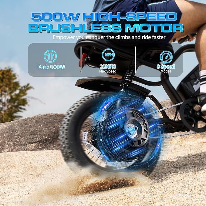 - Special Feature : 16*3 inches Fat Tires, 22mph Max Speed, 36v/12.8ah Removable Battery, 500w Motor, Dual Disc Brake