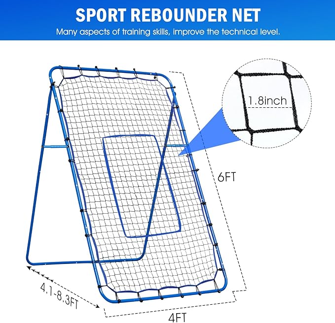 - Versatile Design & Features: The Winthai Rebound Net boasts a 6x4FT area with a sturdy steel frame. Its high-elasticity net ensures consistent rebound, while adjustable targets offer versatile multi-angle training.