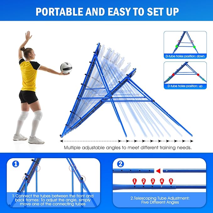 - Volleyball Training Benefits: Volleyball players can improve serves, receives, passes, spikes, and saves with the Rebound Net. The adjustable target center and angles simulate real-game scenarios, enhancing power, accuracy, and overall technique.