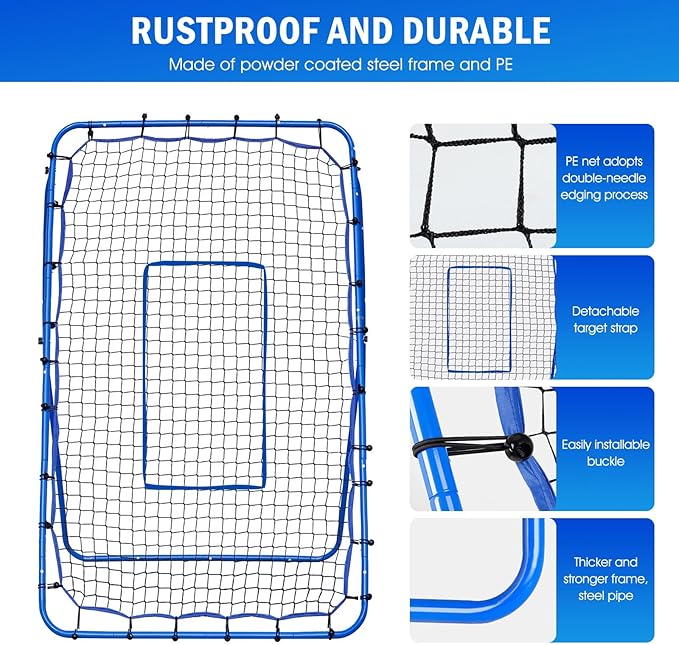 - Baseball Training Benefits: Baseball athletes can refine stance, positioning, and pitching strength with this rebound net. Quick angle changes and adjustable targets enhance reaction time, making it a valuable tool for intense pitching practice.
