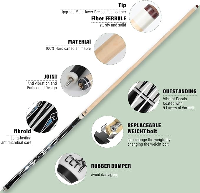 - Precision-Crafted: This 58-inch 2-piece maple pool cue stick is expertly crafted for superior performance and durability.