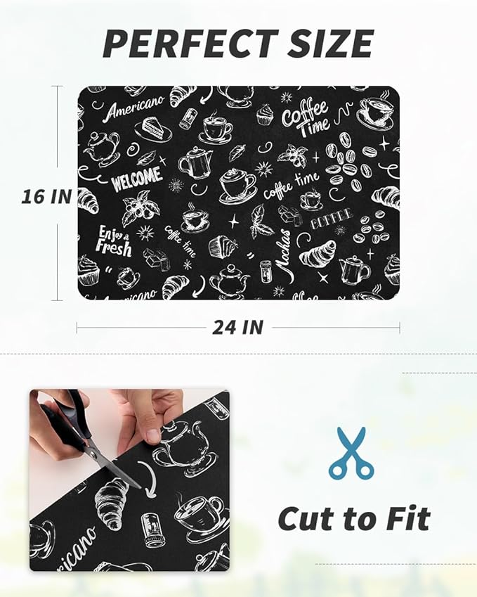 AMOAMI Coffee Mat Hide Stain Rubber Backed Absorbent Dish Drying Mat for Kitchen Counter - Fits Under Coffee Maker & Espresso Machine (16X24, Ink)