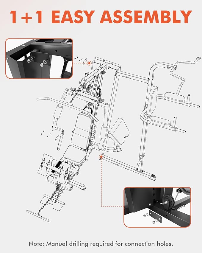 - [All-in-one] Get PEC fly/lat pulldown/low row/chest press/leg extension/leg press/preacher curl/core trainer/calf training/seated row/mid row machine once with only one machine, which supports over 90+ kinds of exercises. The home gym Station is enough for your whole-body training needs!
