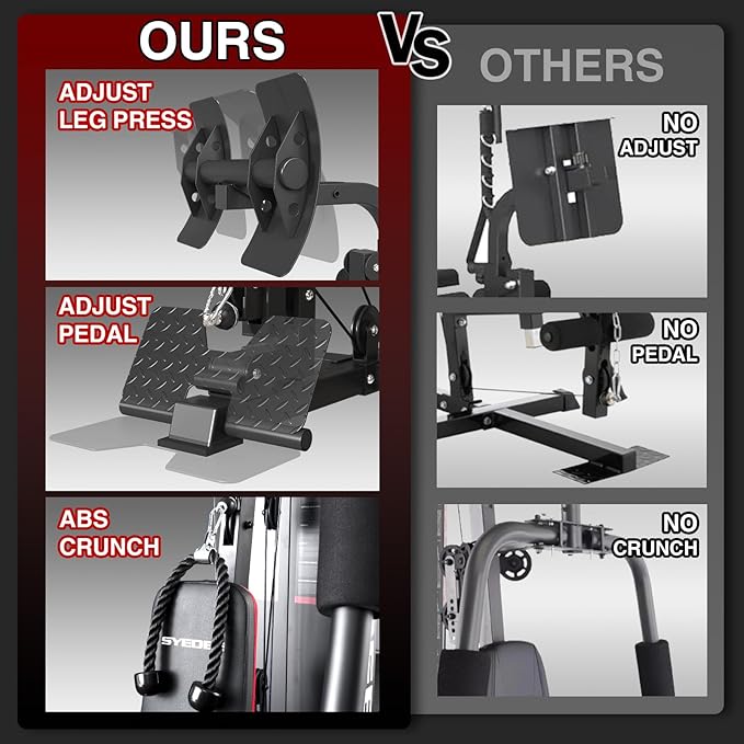 - [All-in-one] Get PEC fly/lat pulldown/low row/chest press/leg extension/leg press/preacher curl/core trainer/calf training/seated row/mid row machine once with only one machine, which supports over 90+ kinds of exercises. The home gym Station is enough for your whole-body training needs!
