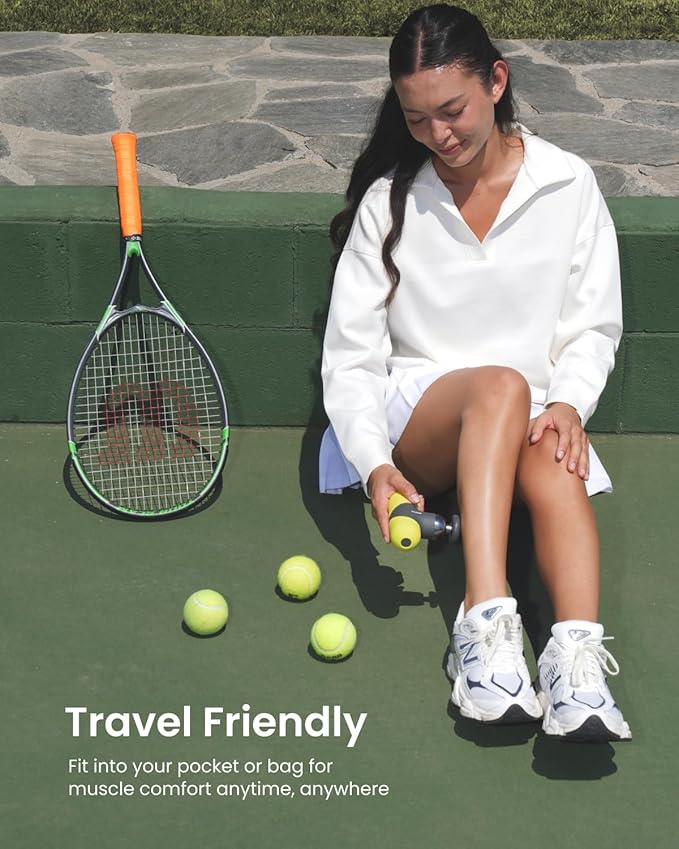 - Portable Comfort: The pocket-sized muscle massage gun weighs only 0.78lb, making easy to take soothing comfort for travel or daily commutes. It has a long-lasting battery life to accommodate your active lifestyle.