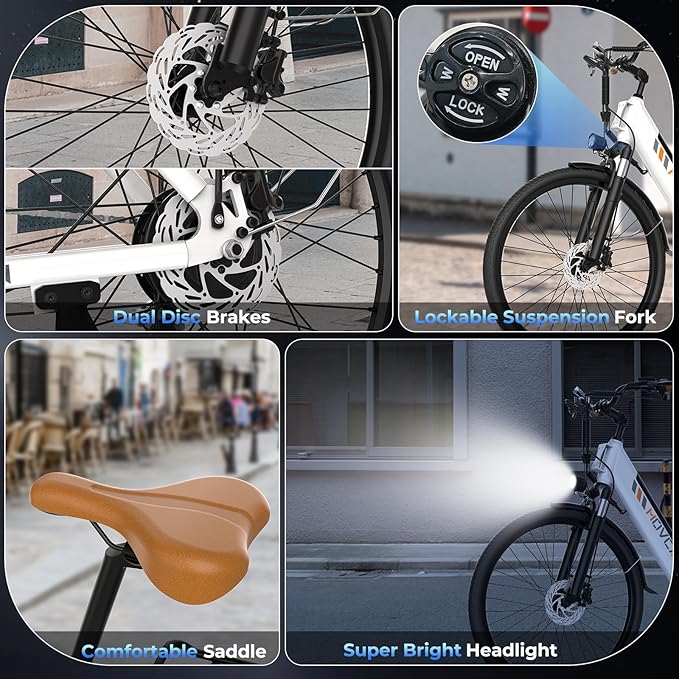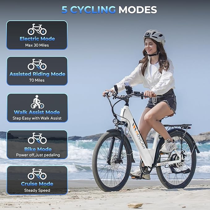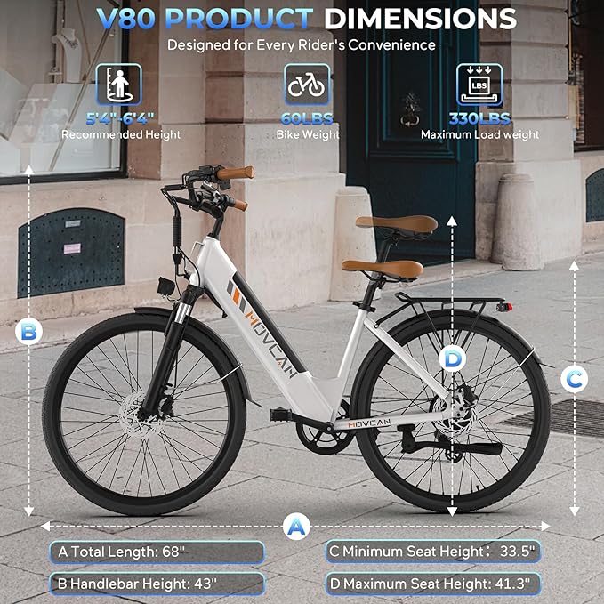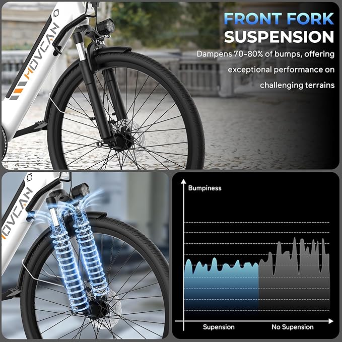 - 【Powerful 1000W Motor】Movcan V80 electric bike Built-in a 1000W(Peak 1500W)brushless hub motor, electric bike for adults can reach a top speed of 28MPH, robust motor delivering 80N.M torque, easily overcome 30° steep hills. You can enjoy a comfortable riding experience and powerful braking even on steep slopes, rugged terrain, or other extreme terrains.