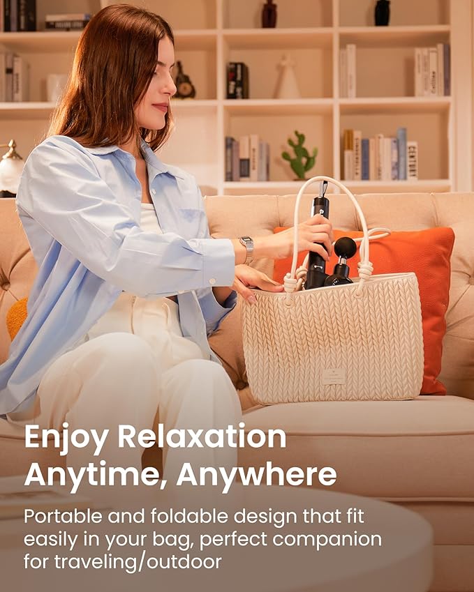 Foldable Massage Gun Deep Tissue with 5 Adjustable Angles,Portable Percussion Back Massager for Muscle/Neck/Body Pain Relief with Long Extension Metal Handle,32-Speeds,with Carry Case