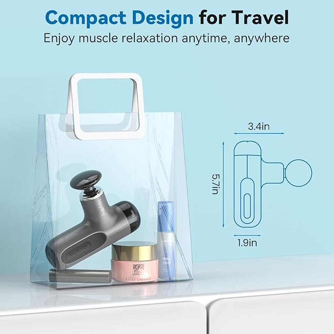 - 【Super Mini Design for Comfort】This MINI Massage Gun with a compact design is dedicated to providing lightweight and powerful massage relaxation in the gym, office and traveling. Ergonomic T-shaped design makes it much easier to hold to reach every part of your body.