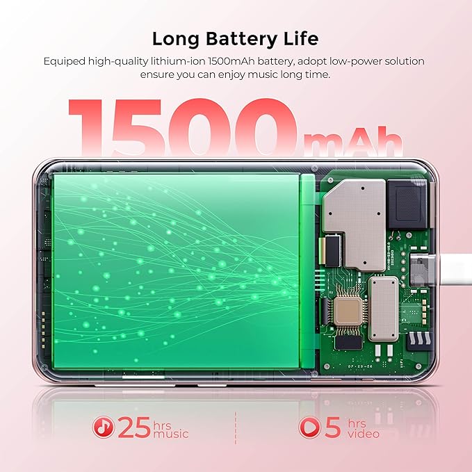 - 1500mAh Long Life Battery: This kids music player is equipped with a 1500mAh lithium battery and utilizes a low-power solution, enabling up to 25 hours of continuous music playback (with wired earbuds) or 5 hours of video. The spotify player features a Type-C charging port, and it takes just 2 hours to fully charge.