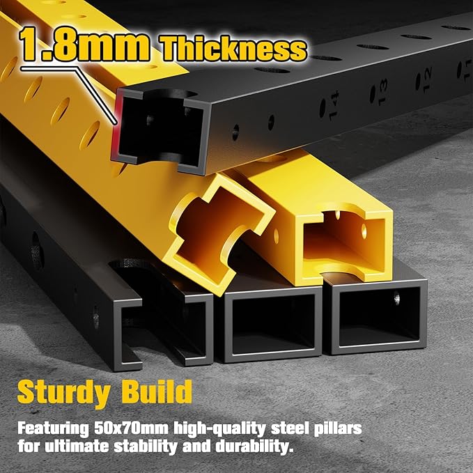 - Superior Performance & Quality: The F4 Squat Rack features robust 50x70mm steel uprights with a substantial wall thickness of 1.8mm. This added strength, combined with overall max dimensions of 79” x 75” x 82”, ensures the F4 provides a solid foundation for intense training sessions, guaranteeing exceptional stability and durability throughout your workouts.