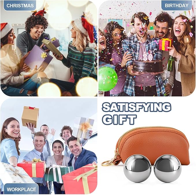 - The Bell Chime Baoding Balls come in a beautiful leather bag, perfect for self-enjoyment or giving to friends and family. Their design is exquisite, the material is superb, and the appearance is simple and elegant. They are easy to carry and store. Whether it's a holiday gift, a birthday gift, or a business gift, they show your care and thoughtfulness