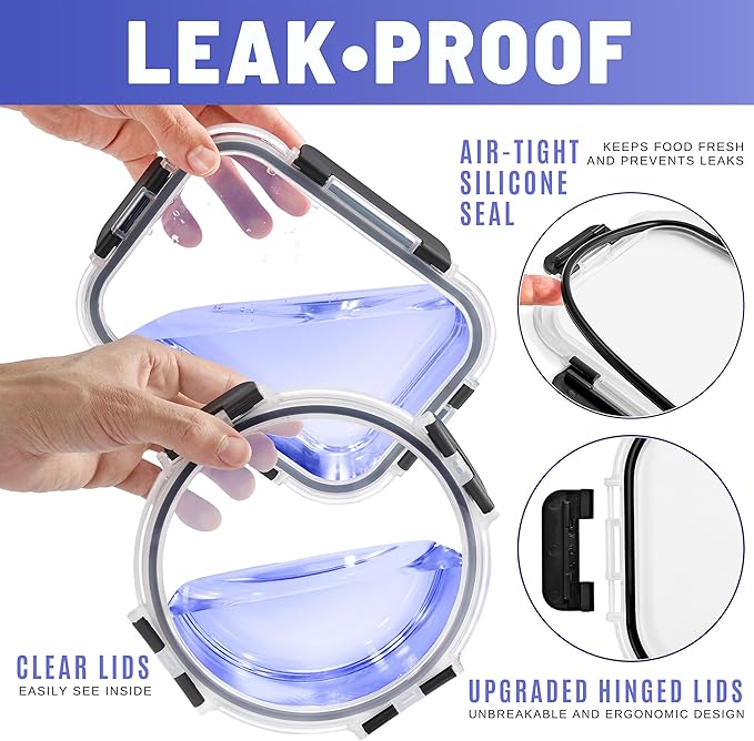 - Glass Meal Prep Containers with Lids: These airtight food storage containers are ideal for storing prepped meals, leftovers, chopped fruits and veggies, snacks, and more making kitchen storage convenient. Use as meal prep lunch box, salad jars with lids, meal prep glass containers with lids, baby food storage containers, pet food storage containers, freezer containers for food storage, meal prep containers, glass collapsible food storage containers, or oven safe glass meal prep containers.