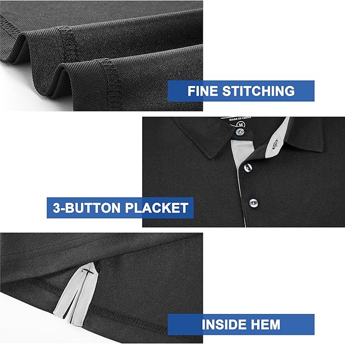 - STYLISH FEATURE: Our golf shirts for men, plain pique with colour-blocking contrast inside collar and placket, making you look stylish and fancy, well-made stitching, natural stretch to wear in comfortable all day long.