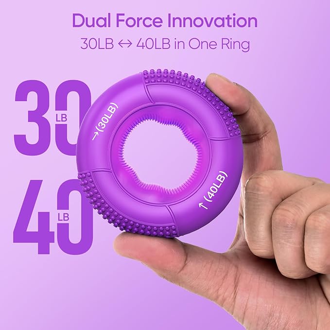 - ๐๐๐ฎ๐น ๐ฅ๐ฒ๐๐ถ๐๐๐ฎ๐ป๐ฐ๐ฒ ๐ฅ๐ถ๐ป๐ด๐ ๐ณ๐ผ๐ฟ ๐ฆ๐บ๐ฎ๐ฟ๐๐ฒ๐ฟ ๐ง๐ฟ๐ฎ๐ถ๐ป๐ถ๐ป๐ด: Each ring offers two resistance levels depending on how you squeezeโe.g., 30LB vs 40LBโgiving you double the value in one tool. Perfect for progressing from rehab to strength training without switching equipment.