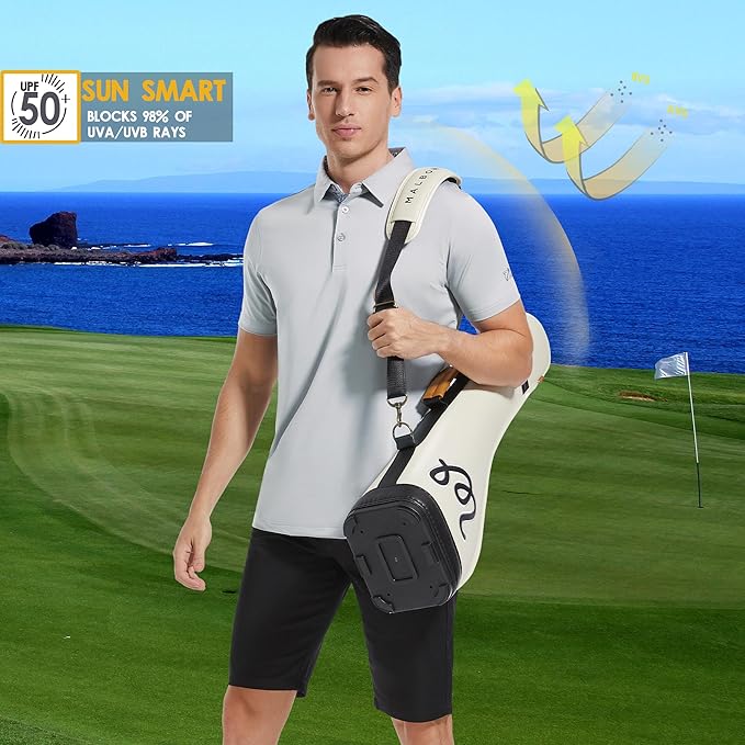• QUALITY MATERIAL: This men’s polo shirts made from Polyester Spandex, offering lightweight, moisture wicking, quick dry, UPF30+, soft hand-feel, 4 way stretch, offering contemporary styling, keep you cool and breathable.
