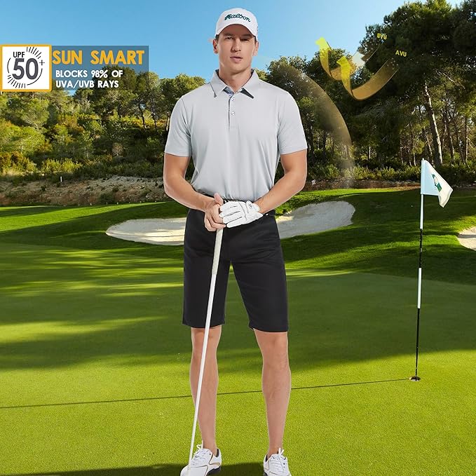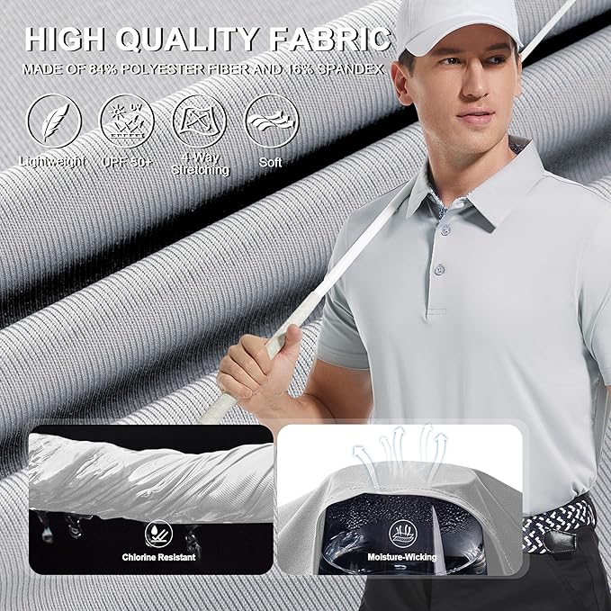 • QUALITY MATERIAL: This men’s polo shirts made from Polyester Spandex, offering lightweight, moisture wicking, quick dry, UPF30+, soft hand-feel, 4 way stretch, offering contemporary styling, keep you cool and breathable.