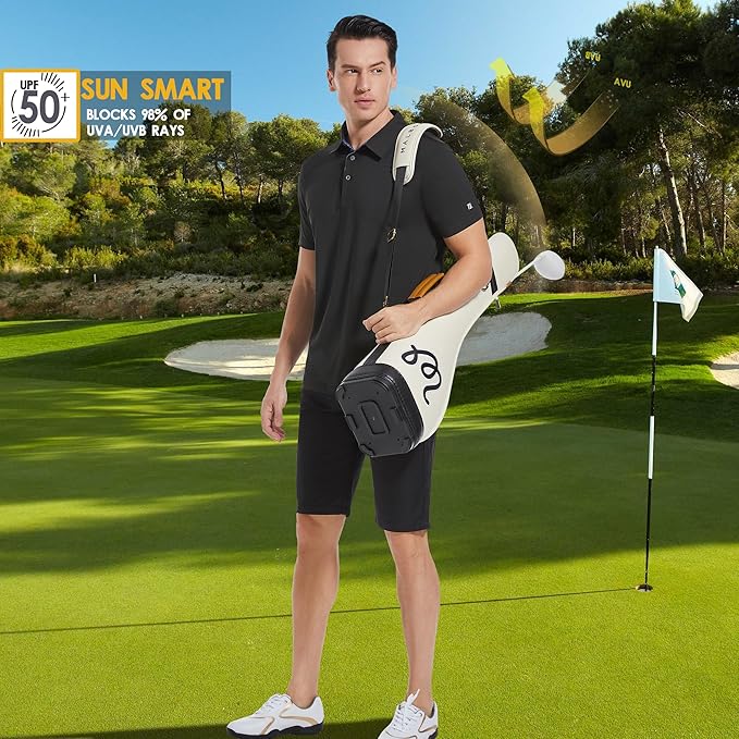 - QUALITY MATERIAL: This men’s polo shirts made from Polyester Spandex, offering lightweight, moisture wicking, quick dry, UPF30+, soft hand-feel, 4 way stretch, offering contemporary styling, keep you cool and breathable.