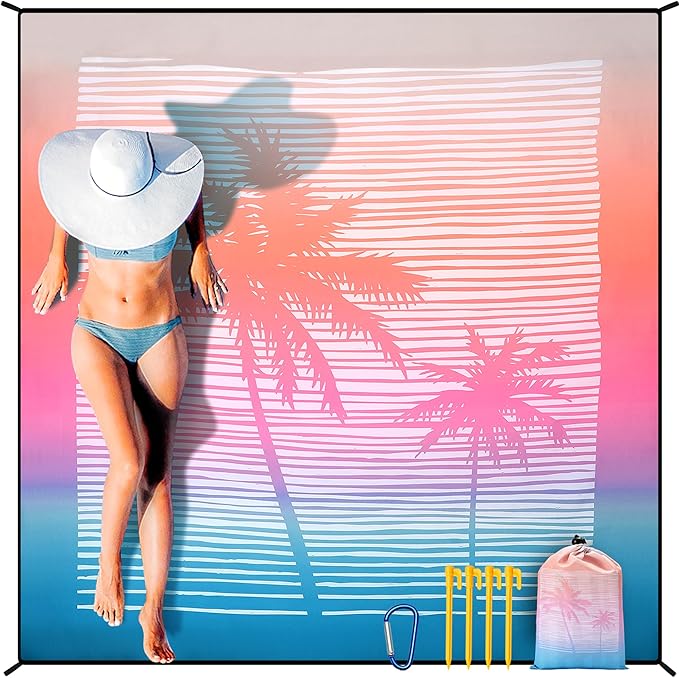 - 🌴【Beautiful Outdoor Beach Blanket】This large beach picnic mat is stylish and suitable for many outdoor places, such as the beach, park, patio, and lawn. and Besides, it can be used as a waterproof picnic blanket, for fishing, hiking, camping, and other activities. Due to its multi-functional characteristics, it is a perfect gift for family and friends.