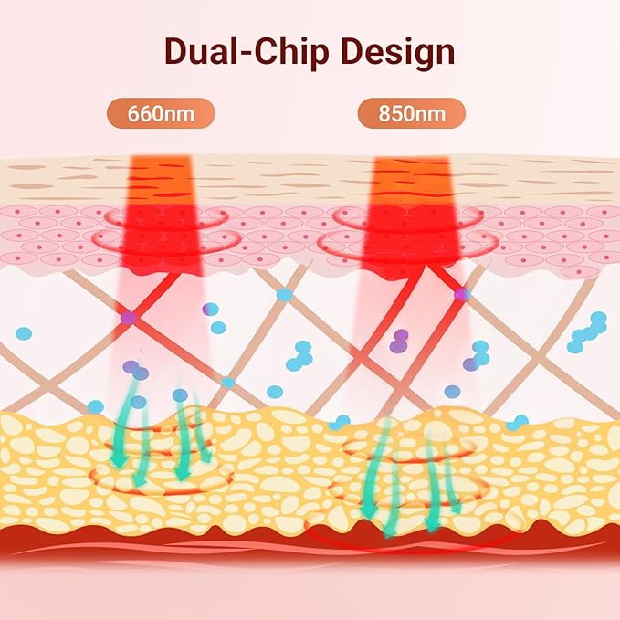 - Pro-Grade Red Light Panel: Our red light therapy lamp features 84 LEDs, utilizing both 660nm red light (visible) and 850nm near-infrared light (invisible). The 660nm red light is absorbed by surface tissues, promoting circulation, while the 850nm near-infrared light penetrates deeper, stimulating cellular energy production.