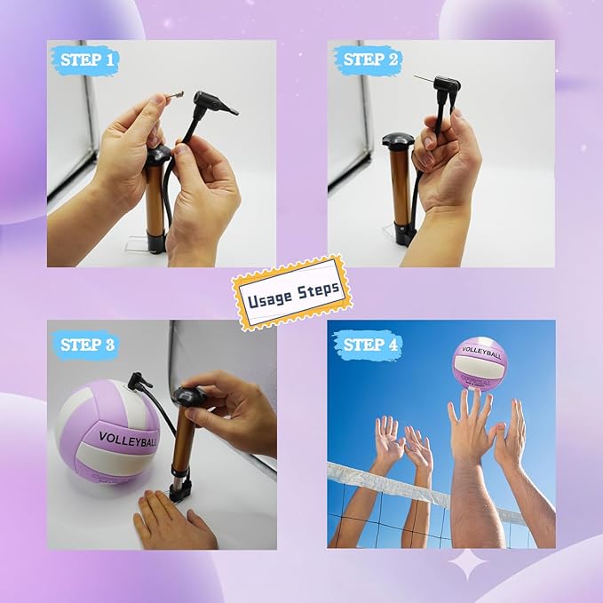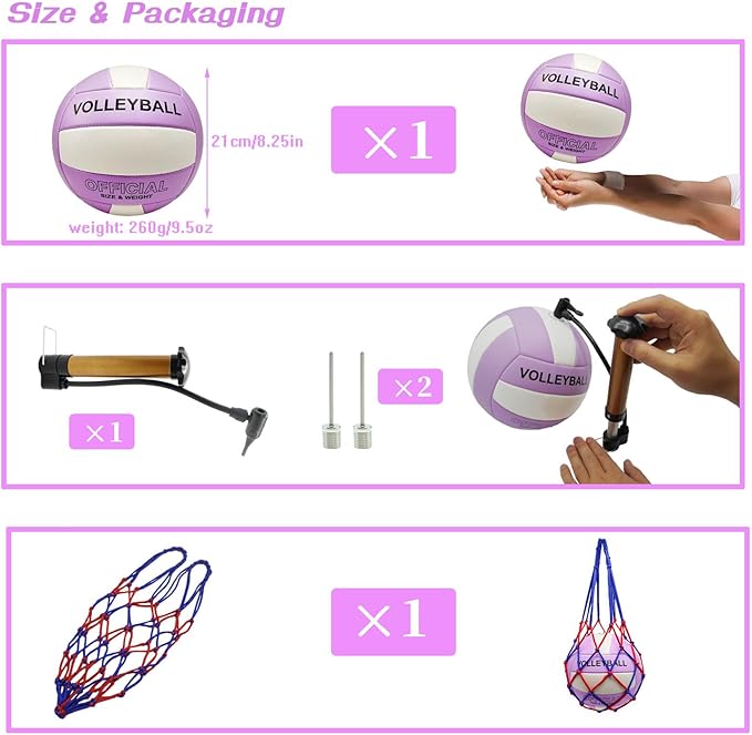 - 【 Volleyball Set】 1 delicate volleyball, 1 inflator pump, 1 beautiful and strong mesh bag, 2 air needles