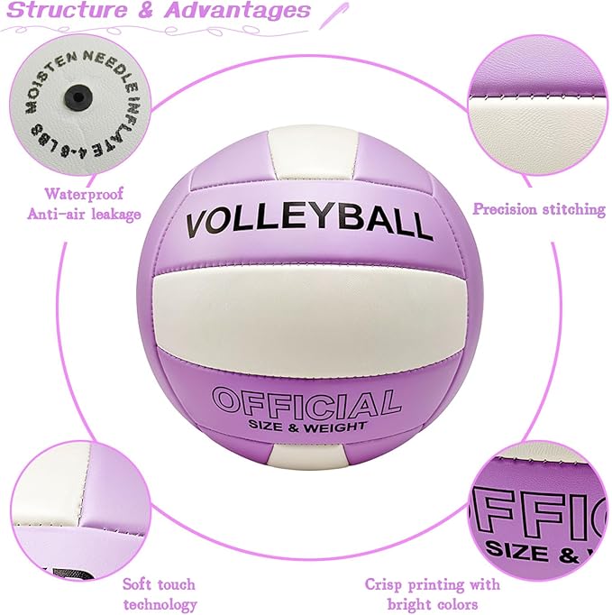 - 【Soft & Safe] Our volleyballs are ergonomically designed with a very soft texture and safe design perfect for outdoor play. The soft volleyball surface reduces arm pain during training and ensures beginners enjoy volleyball games without fear of injury