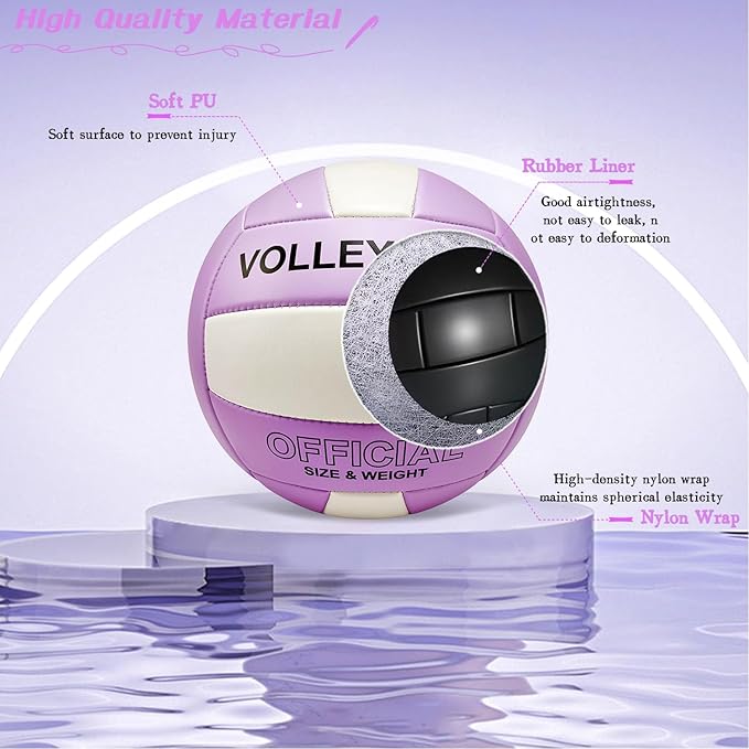 - 【High Quality Materials] Our volleyballs are made of high quality PU leather, thick, comfortable, soft and wear-resistant; the rubber liner provides excellent air retention and shape retention without leakage; high-density nylon wraps around the rubber liner to maintain a good spherical shape and elasticity. This soft waterproof volleyball is well sewn and has a fashionable and exquisite appearance