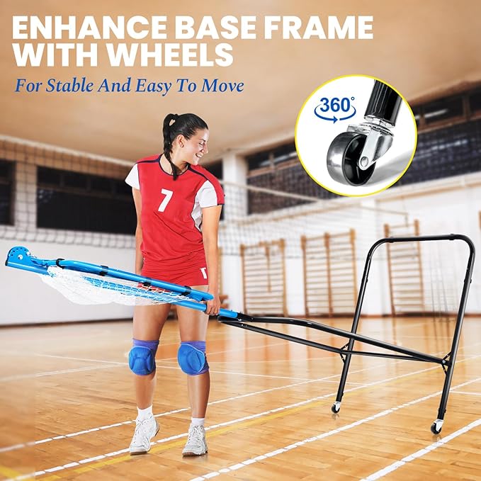 - 【Easy To Assemble And Move】The portable volleyball setter trainer can be easily and quickly assembled and disassembled.Come with a wheels are convenient to move the beach,outdoor,indoor , backyard and park, etc. to start your volleyball training anytime and anywhere.