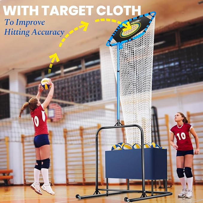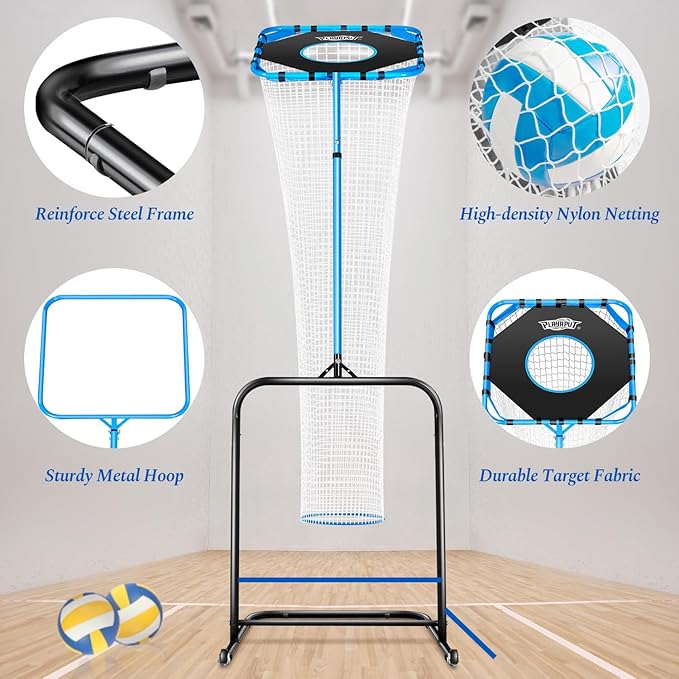 - 【Accurate Volleyball Trainer】 volleyball serve trainer with target to help you improve your hitting accuracy and power speed. Great for setting, passing, serving, spiking and a variety of other skills. Sturdy nylon mesh pockets both resist impact and collect volleyballs, allowing you to focus more on consistent practice.