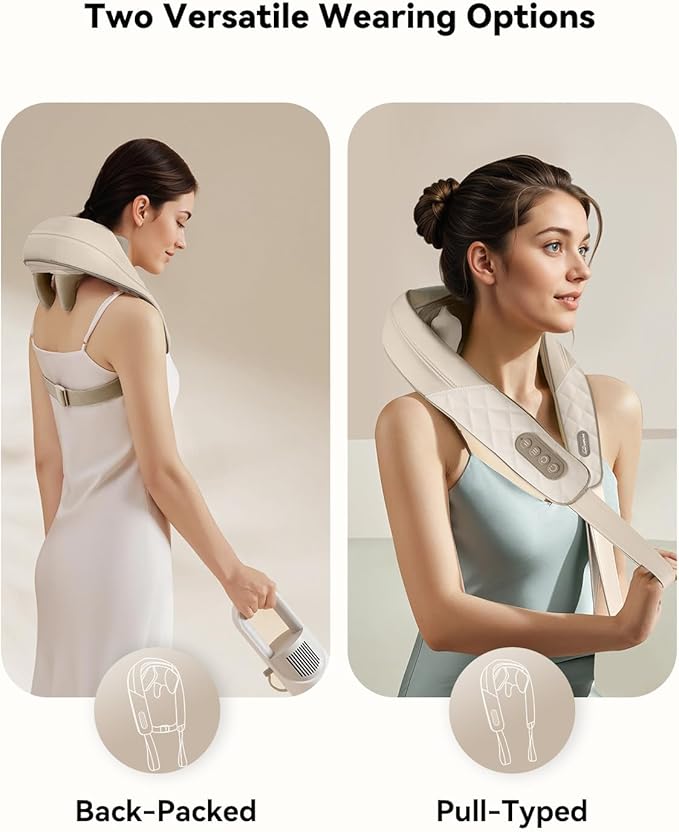- 【Hands-Free Design】Snailax neck massager's ergonomic, wearable design allows freedom of movement during use, unlike traditional massagers. Whether at home, in the office, in the car, or traveling, the adjustable strap ensures a perfect fit for all body types. For a more intense massage, simply use the hand-pull method to enhance the pressure.