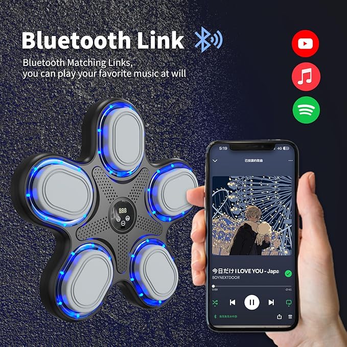 - 🎶 Digital Boxing Machine: Unleash your fitness fun with our smart boxing machine, merging music and exercise seamlessly. Revamp your fitness routine with our LED punch experience! Sync the music to your phone via bluetooth for a dynamic visual rush.