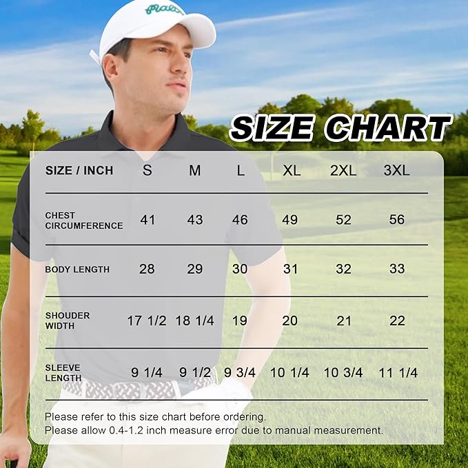 - US SIZE: This mens golf polo based on US regular fit: S, M, L, XL, XXL, 3XL and have multiple colors for choice. Allowing for great mobility in any directions yet they still have a fitted look wearing our polos.