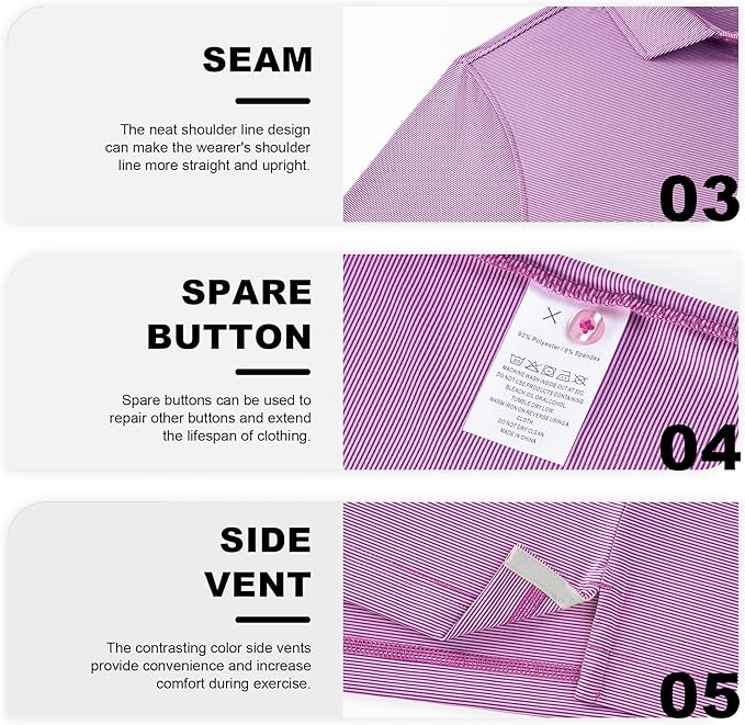 • STYLISH DESIGN: This mens polo shirts featuring the pinstripe with two tone for an elegant and fashion look. contrast color design at the side slits adds a touch of contemporary style.