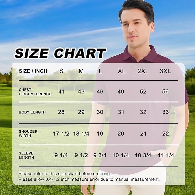 • US SIZE: This mens golf polo based on US regular fit: S, M, L, XL, XXL, 3XL and have multiple colors for choice. Allowing for great mobility in any directions yet they still have a fitted look wearing our polos.