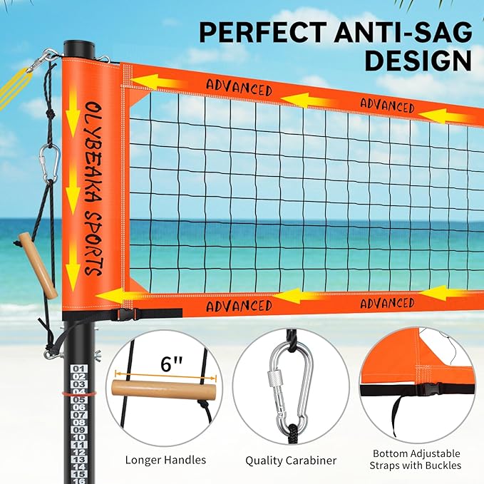 - ๐๐ฎ๐๐ฅ ๐๐๐ง๐ฌ๐ข๐จ๐ง ๐๐ฒ๐ฌ๐ญ๐๐ฆ ๐๐จ๐ซ ๐๐๐ซ๐จ ๐๐๐ ๐ ๐ข๐ง๐ : Side tension adjuster (22mm-diameter beechwood) + bottom webbing buckles adjust tension in seconds. No more drooping nets! Ensuring a perfect setup for beach, grass, or backyard volleyball games every time.