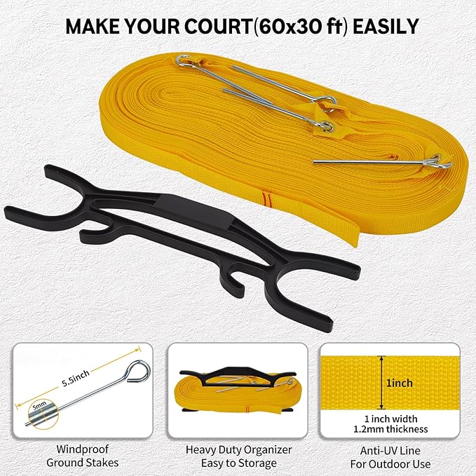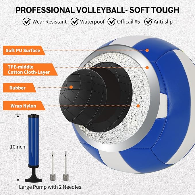 - ๐๐จ๐ฆ๐ฉ๐ฅ๐๐ญ๐ ๐๐๐ฆ๐-๐๐๐๐๐ฒ ๐๐๐๐๐ฌ๐ฌ๐จ๐ซ๐ข๐๐ฌ: Includes high quality PU volleyball(Value $19.99), air pump with 10in dual-needle, and 1in anti-UV boundary tape (1.2mm thick for enhanced wind resistance). Boundary tape defines the court, while premium PU ball ensures consistent bounce for outdoor & beach volleyball matches.