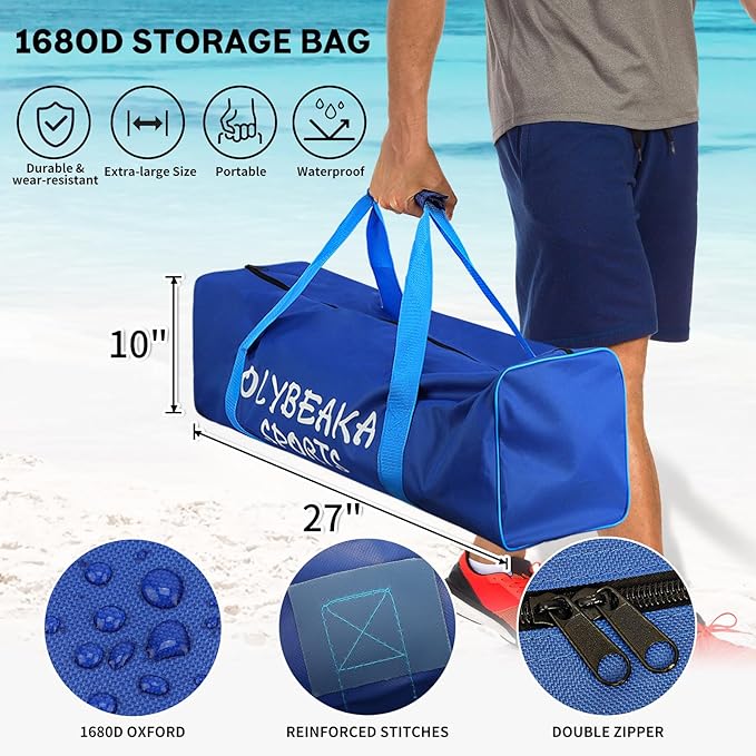 - ๐๐๐๐ฏ๐ฒ-๐๐ฎ๐ญ๐ฒ, ๐๐๐ฌ๐ฌ๐ฅ๐-๐ ๐ซ๐๐ ๐๐ญ๐จ๐ซ๐๐ ๐:Crafted from rugged 1680D Oxford fabric, our carry bag features 1.5-inch wide, reinforced handles for effortless carrying. With a remarkable 110+ lbs capacity, it easily stores the entire volleyball net set, including poles, net, and accessories. Its compact, foldable design ensures convenient transportโsimply grab the bag and head to the beach, park, or your own backyard for instant volleyball fun!