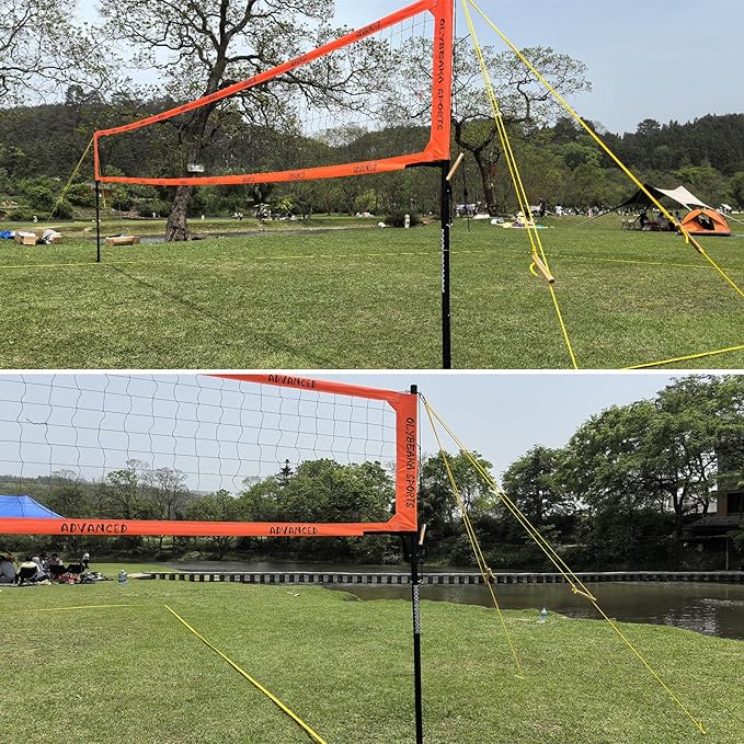 - ๐๐ง๐๐๐๐ญ๐๐๐ฅ๐ ๐๐ญ๐๐๐ข๐ฅ๐ข๐ญ๐ฒ: Secure your outdoor volleyball net effortlessly. Attach the top carabiner of guide rope to the eye bolts on the poles, drive the 10" L, 8mm-thick ground stakes with provided hammer into the ground, and use our premium 22mm-diameter beechwood tension rodsโlarger and more ergonomic than plastic alternativesโto keep the poles upright. This setup withstands powerful ball impacts, ensuring steady play on grass, sand, or in your backyard.